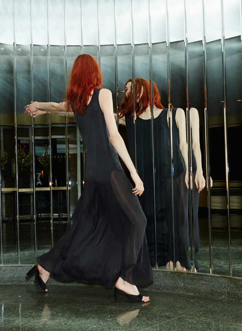 A friend of hers wore a piece from the inaugural collection out to a benefit and was spotted by someone from Vogue who called the collection in. Jaclyn was at Inle Lake in Burma when she saw the email from Vogue requesting to use Awaveawake for a story. She somehow choreographed having a friend in New York ferry the dress over. Having the full dress featured in a story in Vogue combined with support from super model friends helped encourage her to continue